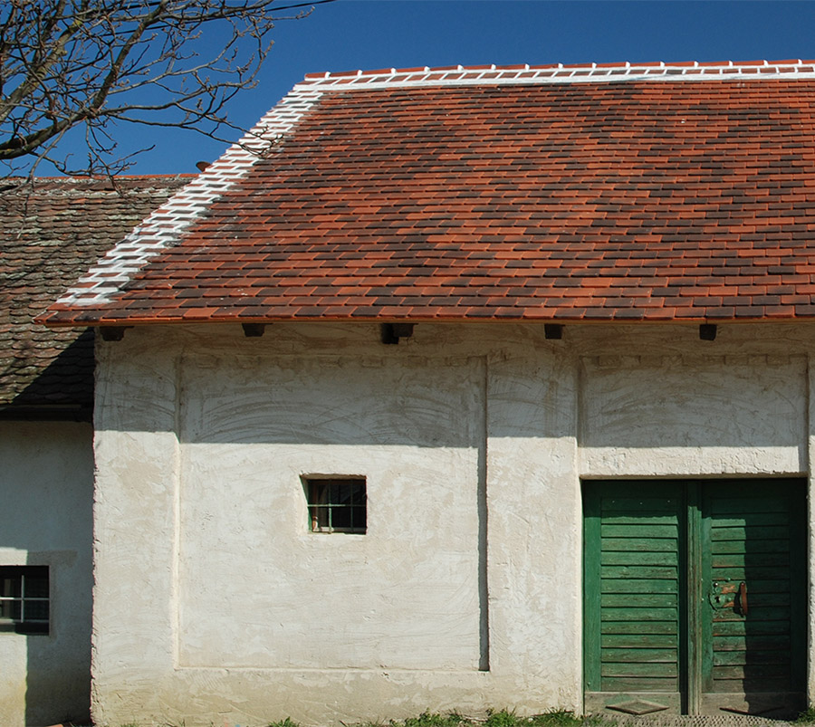Vorherrschend ist in ganz Niederösterreich die Doppeldeckung mit „Wiener Taschen“ eckig oder gerundet. Die stark gerunde-ten Biberschwänze sind zu vermeiden. Die Oberfläche sollte nicht zu glatt sein, damit sich bald eine gewisse Patina anset-zen kann. Besonders schön sind alte Dachziegel mit ihrer Patina, weshalb auch bei neuen Dachzie-geln die patinierte Oberfläche (z.B. „Wiener Tasche antik“) vorzuziehen ist. In manchen Kellergassen sind sogenannte Strangfalzziegel aus Ton üblich, Neueindeckungen sollte man mit diesem Material nur in Ausnahmefällen durchführen.