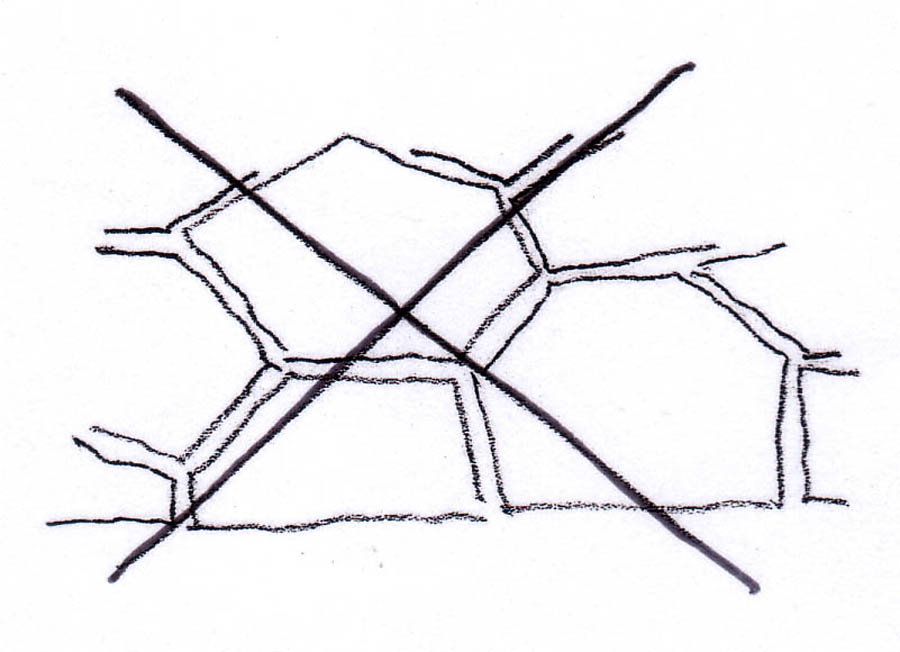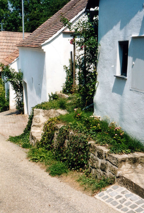 Löffelsteine in der Kellergasse unbedingt vermeiden! Sie wirken fremd und störend und werden außerdem nur dann vom Grün überwachsen, wenn sie ständig intensiv gepflegt werden!