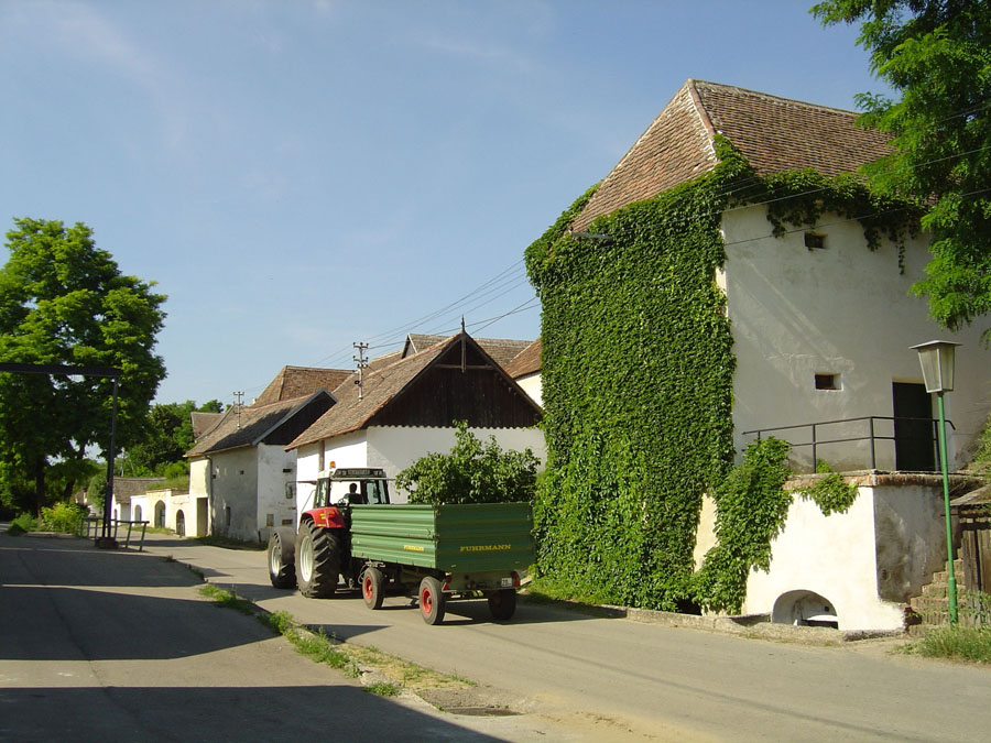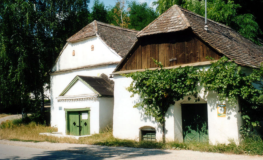 Eher selten werden Presshausfassaden begrünt. Dafür eignen sich naturgemäß Weinstöcke am besten, Wilder Wein ist eine Alternative dazu.