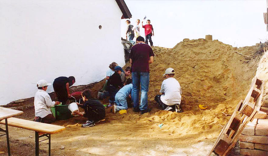 - ein Sandhaufen zum Graben, Bauen usw.