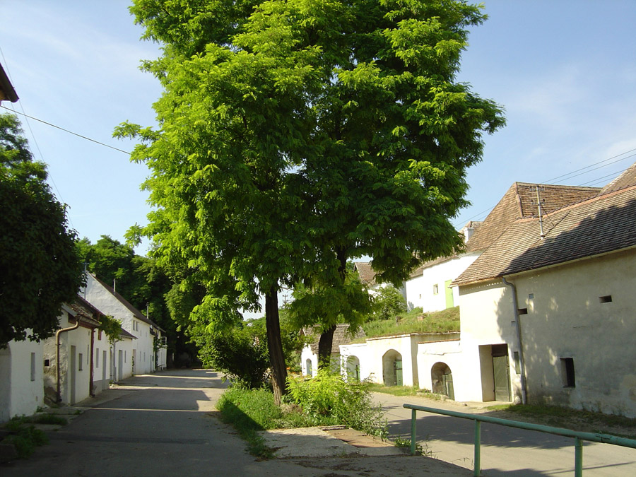 Die Robinie (Robinia pseudoacacia) , im Volksmund "Akazie" genannt, war ursprünglich bei uns nicht heimisch, sondern wurde aus Nordamerika eingebürgert. Durch die intensive Anreicherung des Bodens mit Stickstoff können in Robinienbeständen nur mehr wenige, Stickstoff liebende Pflanzenarten wie z.B. Holunder, Brennessel, Taubnesseln, Schöllkraut und Knoblauchsrauke gedeihen. Die ursprüngliche üppige Artenvielfalt der Hohlwege ist in Kellergassen durch die starke Ausbreitung der Robinien großteils verloren gegangen.