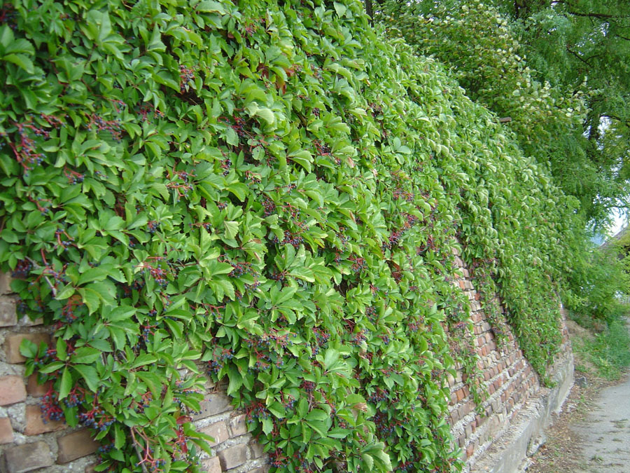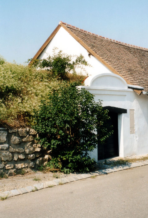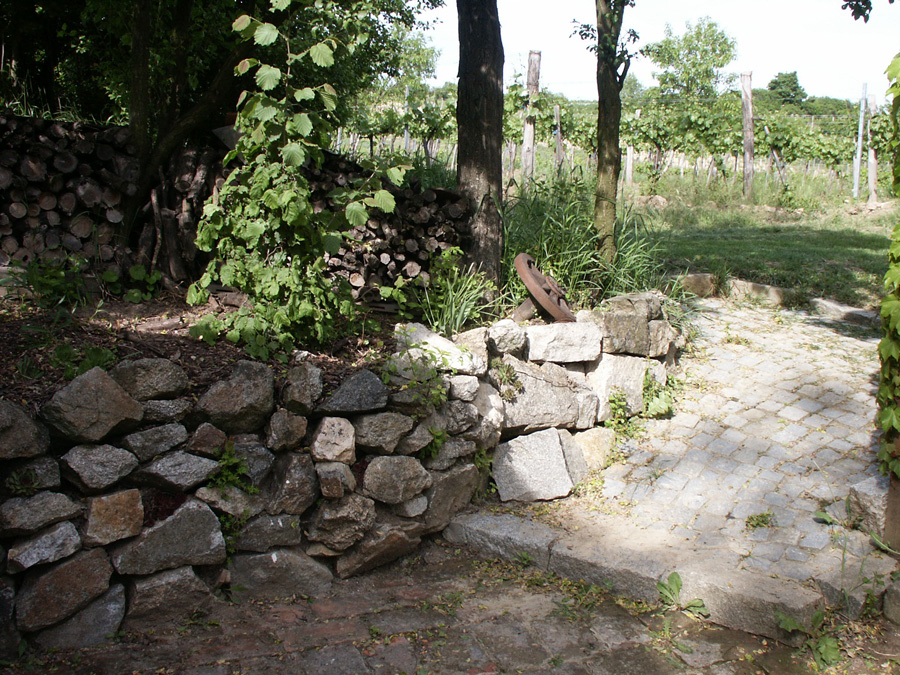 Sehr hohe und breite Stützmauern fügen sich besser in die Kellergasse ein, wenn sie mit Kletterpflanzen begrünt werden.